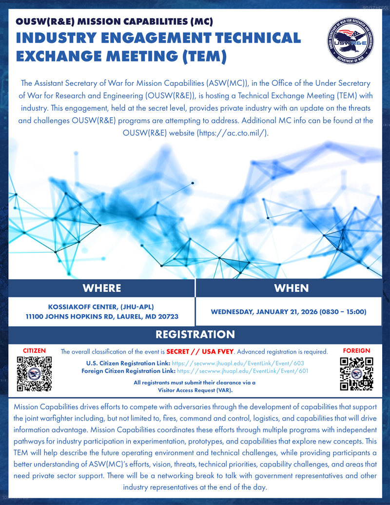 Alex Lovett is the Principal Deputy Assistant Secretary of War for Mission Capabilities in the Office of the Under Secretary of War for Research and Engineering (OUSW(R&E)). In this role, he oversees an organization whose mission is to accelerate the development and integration of new technologies to maintain U.S. technological superiority. His responsibilities include identifying, incubating, and transitioning technologies, systems, and system-of-systems to close time-critical gaps in high-priority missions.